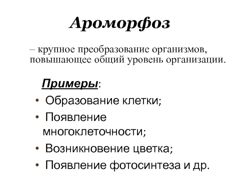 – крупное преобразование организмов, повышающее общий уровень организации.