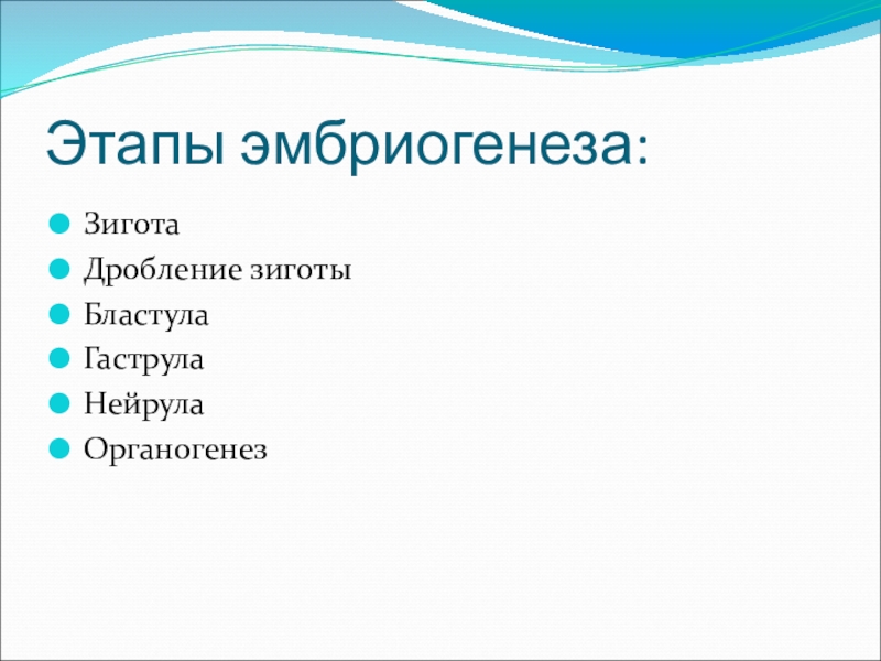 Период об образования зиготы до рождения или выхода из яйцевой оболочки