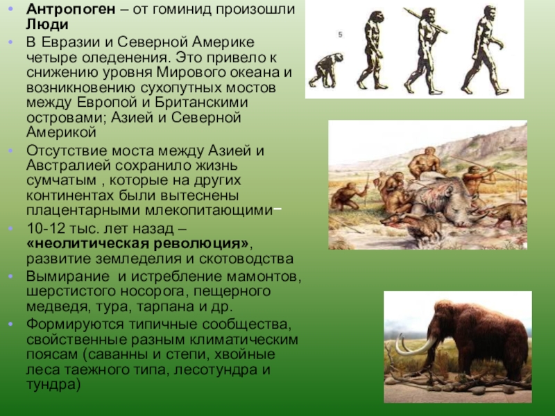 В результате изменений климата естественным отбором сохранялись организмы, у которых формировались приспособления, соответствующие среде обитания. Это обусловило эволюцию живой природы, формирование новых видов.