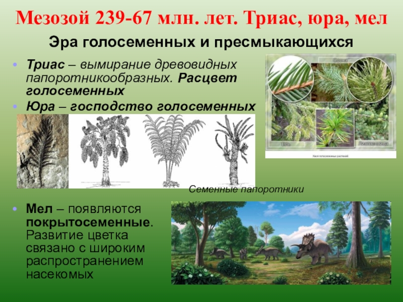 Триас – вымирание древовидных папоротникообразных. Расцвет голосеменных