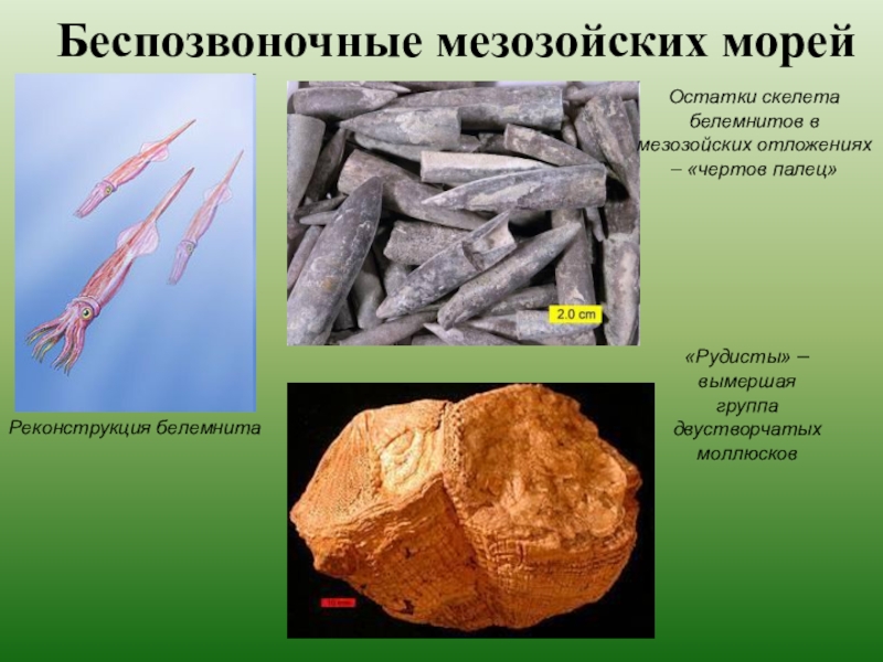 В морях водились аммониты, белемниты, морские лилии