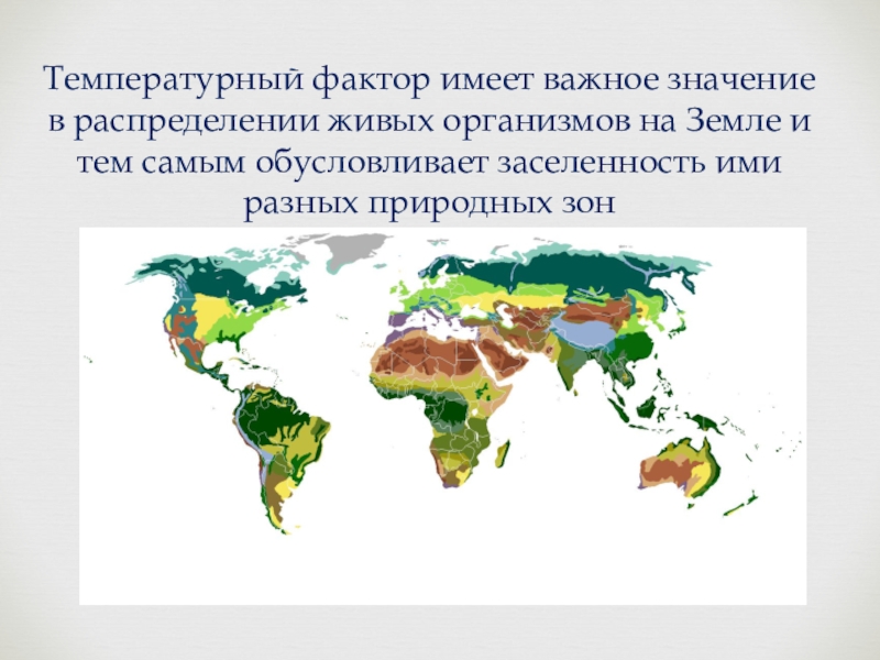 Слайд 14Температурный фактор имеет важное значение в распределении живых организмов на Земле