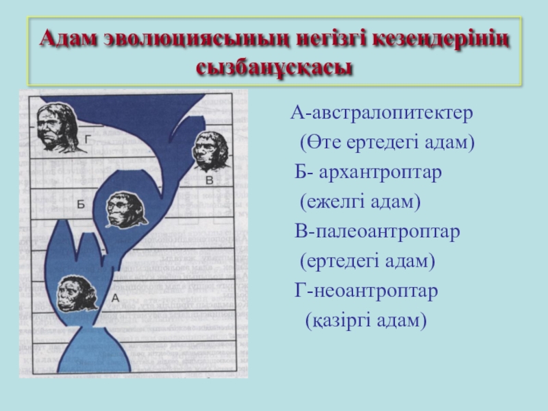 Слайд 16Адам эволюциясының негізгі кезеңдерінің сызбанұсқасы