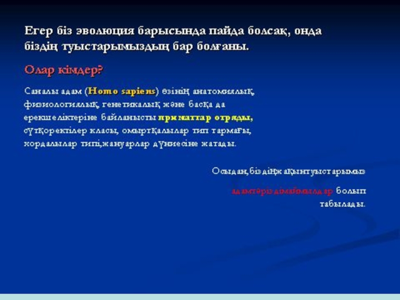 тегі,олардың тіршілік әрекеті,ақыл-ойы,өмір сүру жағдайы қазіргі адамға ұқсас;