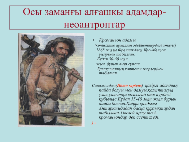 Слайд 25Осы заманғы алғашқы адамдар-неоантроптар
