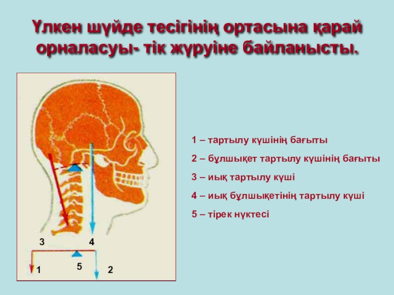 Слайд 17Үлкен шүйде тесігінің ортасына қарай орналасуы- тік жүруіне байланысты.