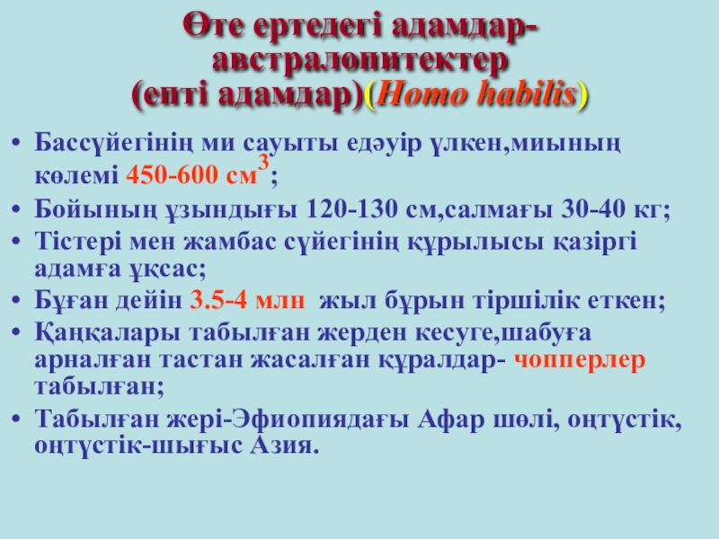 Слайд 12Өте ертедегі адамдар- австралопитектер