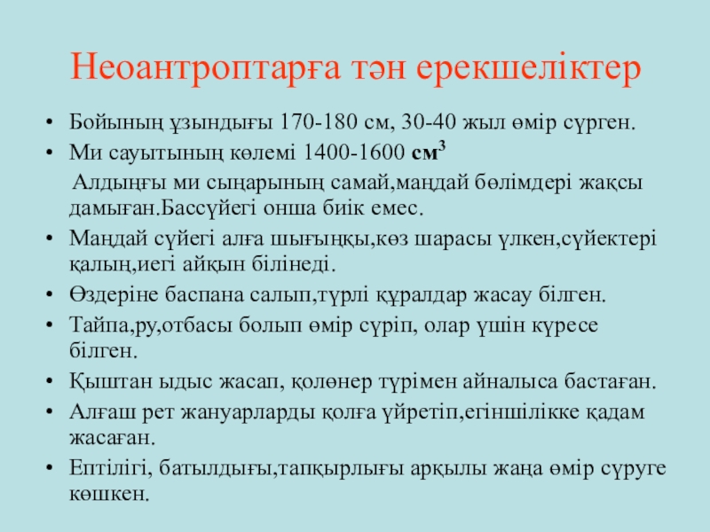 Слайд 26Неоантроптарға тән ерекшеліктер