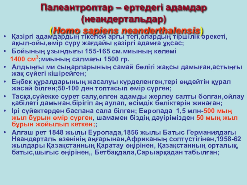 Палеантроптар – ертедегі адамдар (неандертальдар)