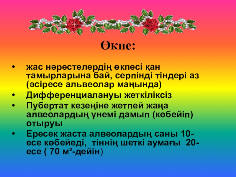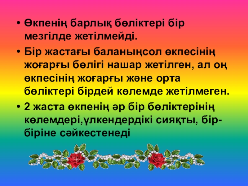 Слайд 22Өкпенің барлық бөліктері бір мезгілде жетілмейді.