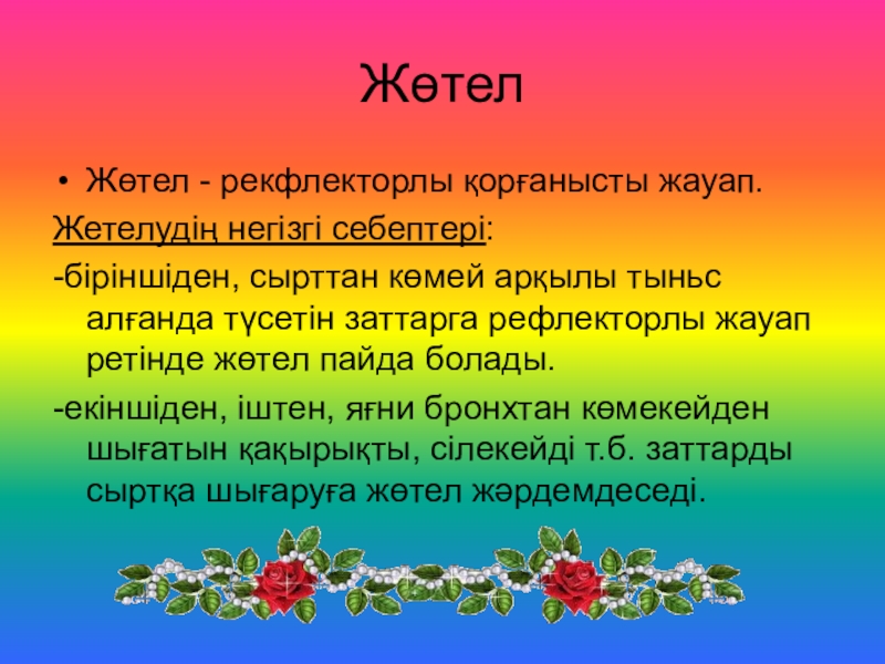 Жөтел - рекфлекторлы қорғанысты жауап.