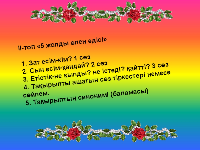 Слайд 5II-топ «5 жолды өлең әдісі»