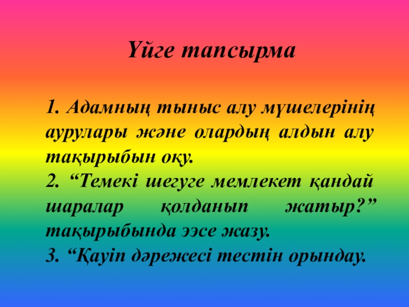 2. “Темекі шегуге мемлекет қандай шаралар қолданып жатыр?” тақырыбында ээсе жазу.
