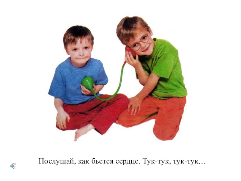 Слайд 24Послушай, как бьется сердце. Тук-тук, тук-тук…