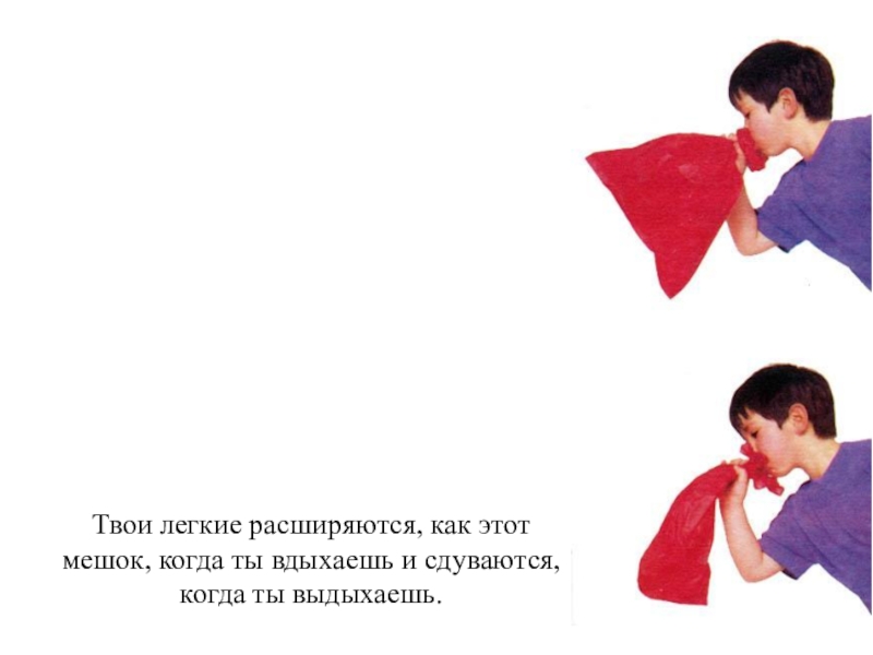Твои легкие расширяются, как этот мешок, когда ты вдыхаешь и сдуваются,когда ты выдыхаешь.