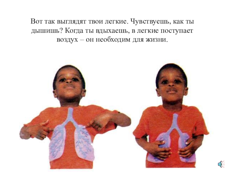 Вот так выглядят твои легкие. Чувствуешь, как ты дышишь? Когда ты вдыхаешь, в легкие поступаетвоздух – он