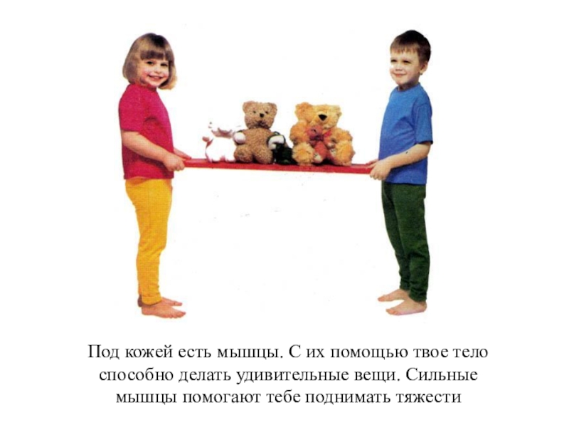 Под кожей есть мышцы. С их помощью твое телоспособно делать удивительные вещи. Сильныемышцы помогают тебе поднимать тяжести