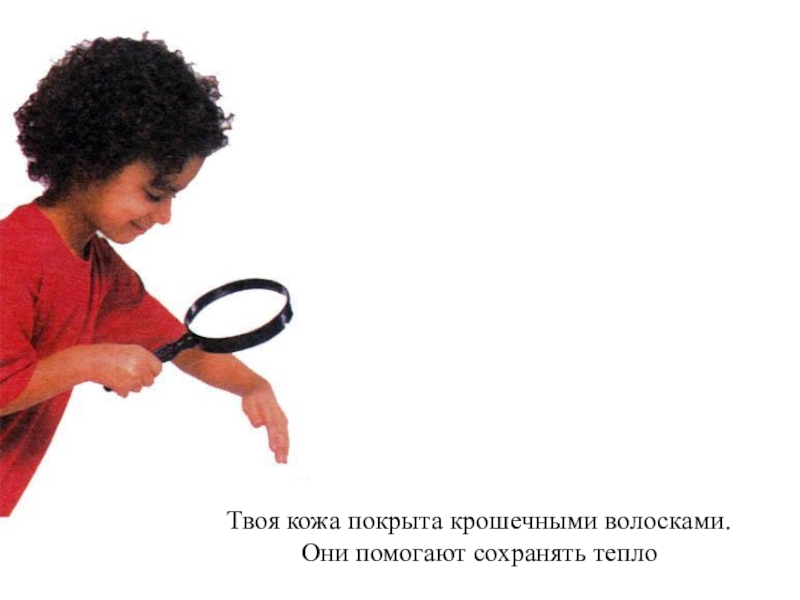 Слайд 31Твоя кожа покрыта крошечными волосками.
