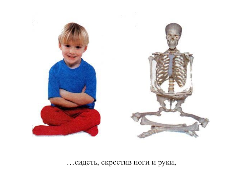 Слайд 14…сидеть, скрестив ноги и руки,