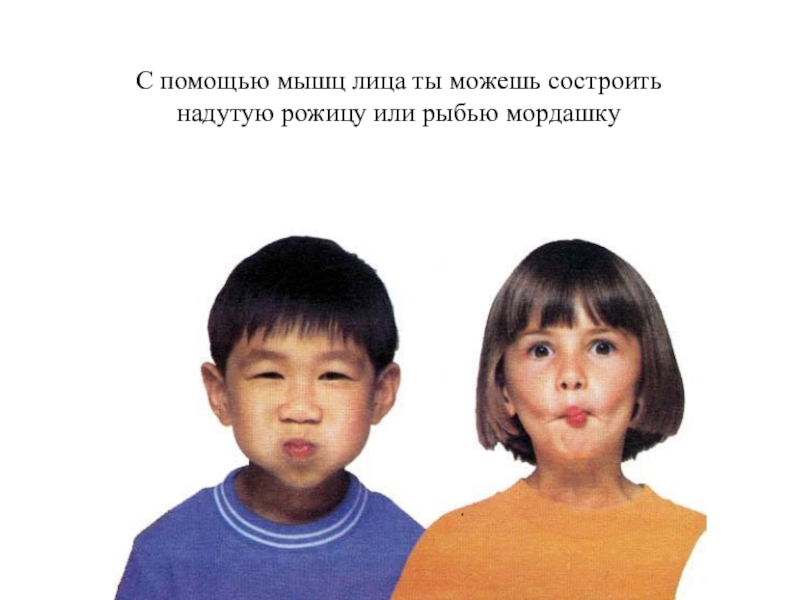 Слайд 20С помощью мышц лица ты можешь состроить