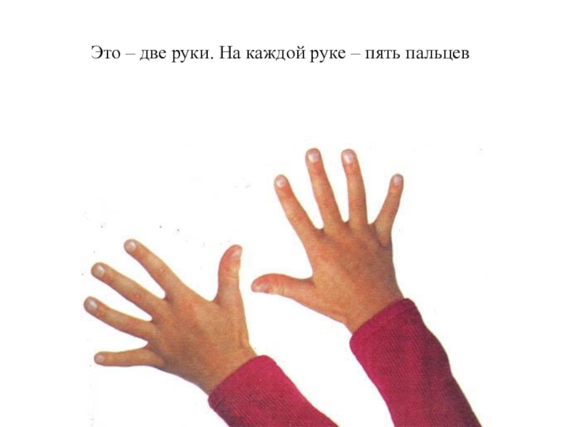 Слайд 7Это – две руки. На каждой руке – пять пальцев