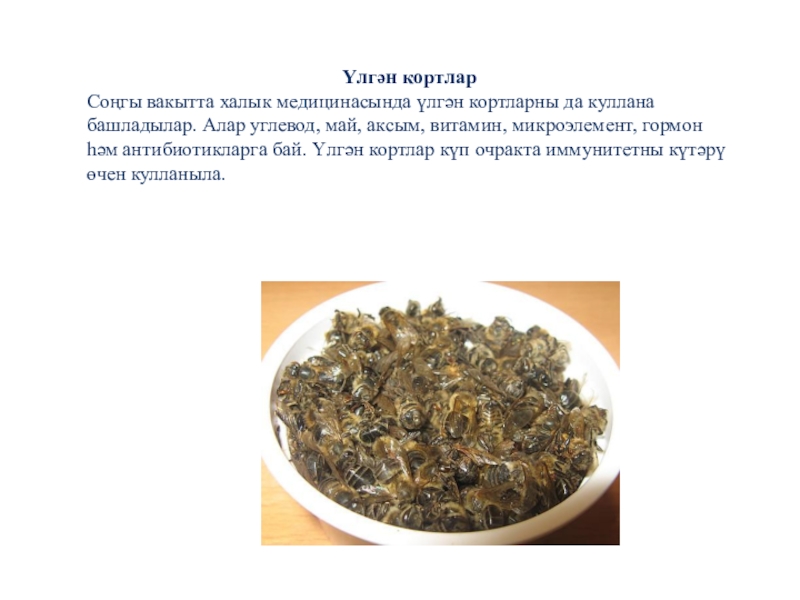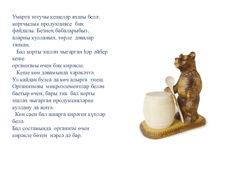 Слайд 8Умарта тотучы кешеләр яхшы белә: кортчылык продукциясе бик файдалы. Безнең бабаларыбыз,
