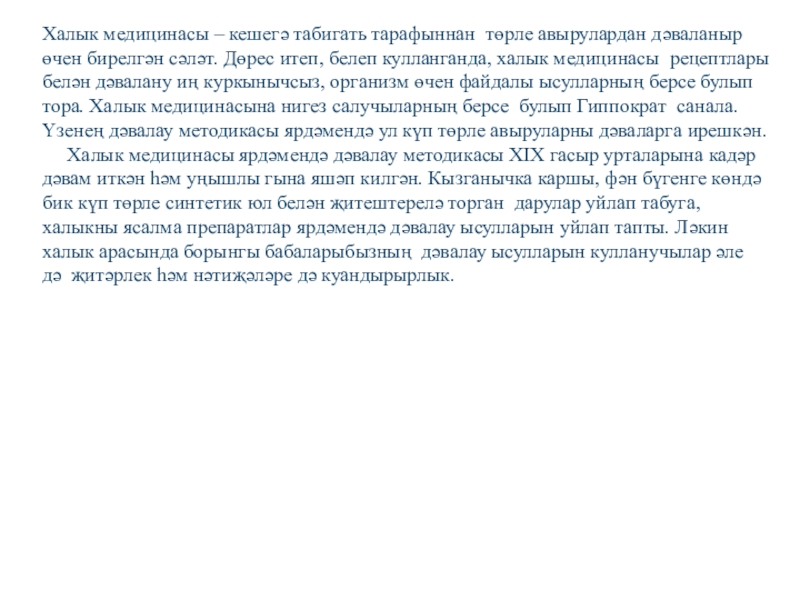 Слайд 6Халык медицинасы – кешегә табигать тарафыннан төрле авырулардан дәваланыр өчен бирелгән
