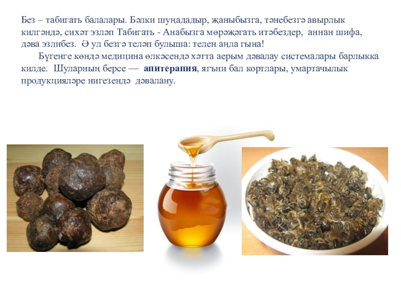 Слайд 9Бал – тәмле әйбер генә түгел, ә бәлки кыйммәтле дәва чарасы да.