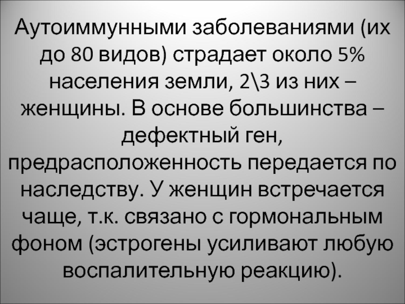 Слайд 2Аутоиммунными заболеваниями (их до 80 видов) страдает около 5% населения земли,