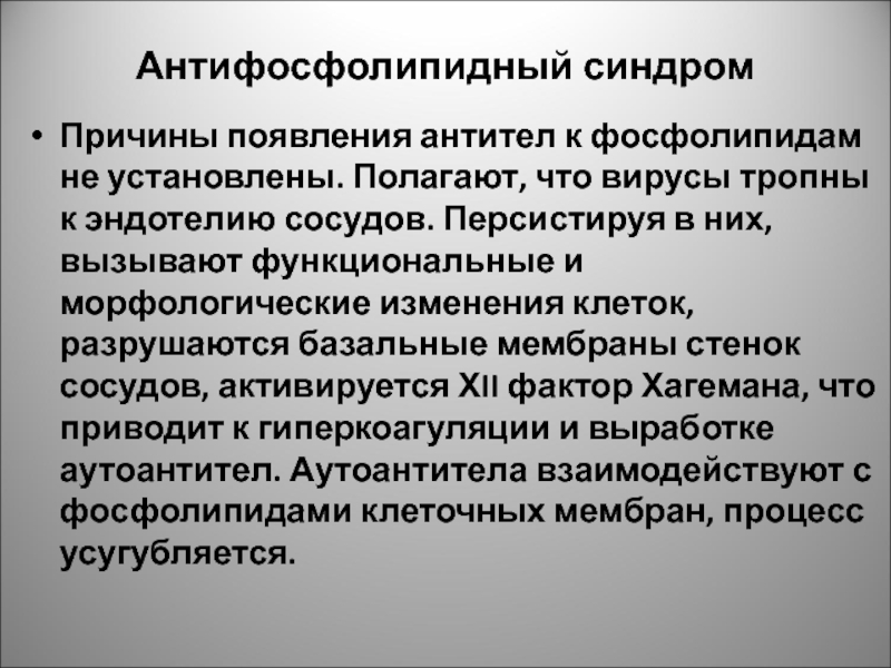 Причины появления антител к фосфолипидам не установлены. Полагают, что вирусы