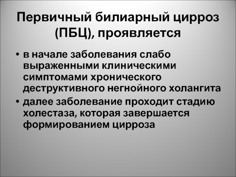 Слайд 16Первичный билиарный цирроз (ПБЦ), проявляется