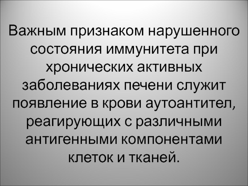 Слайд 13Важным признаком нарушенного состояния иммунитета при хронических активных заболеваниях печени служит
