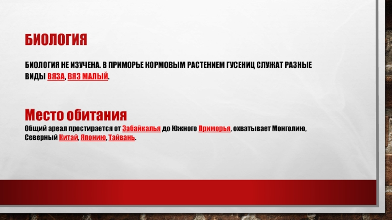 Общий ареал простирается от Забайкалья до Южного Приморья, охватывает Монголию, Северный Китай, Японию, Тайвань.