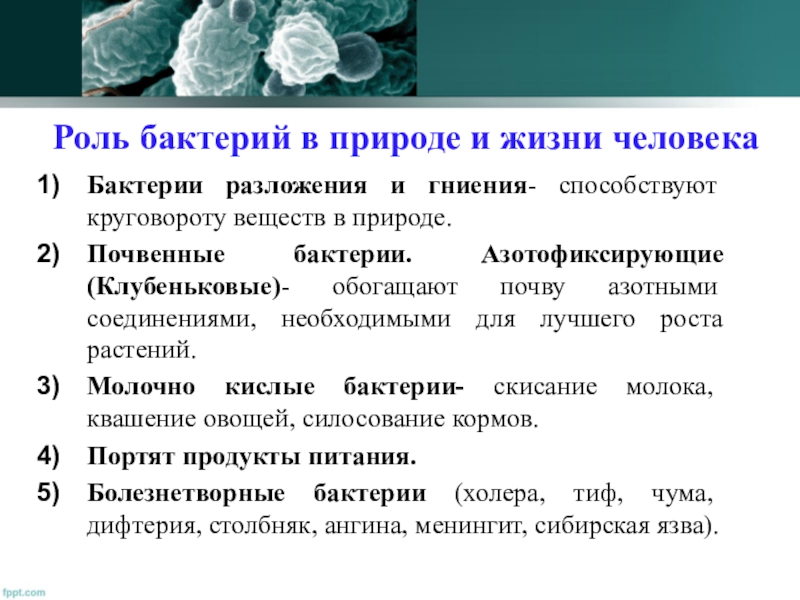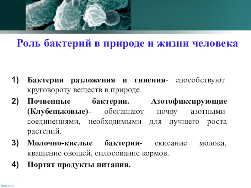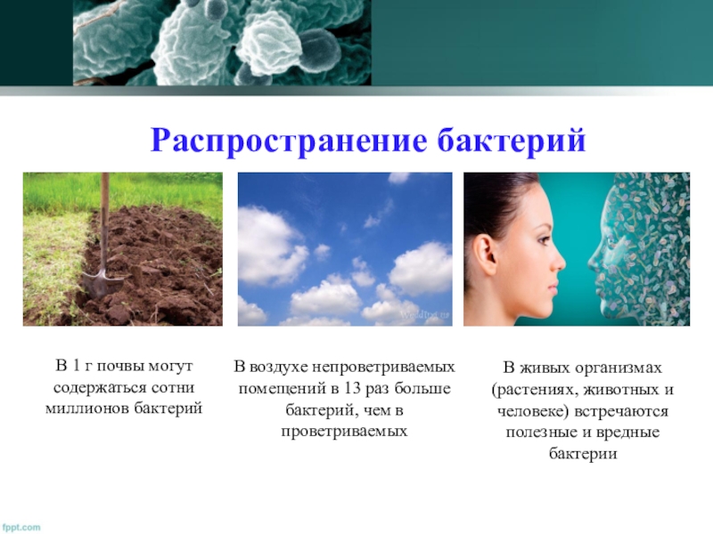 (растениях, животных и человеке) встречаются полезные и вредные бактерии