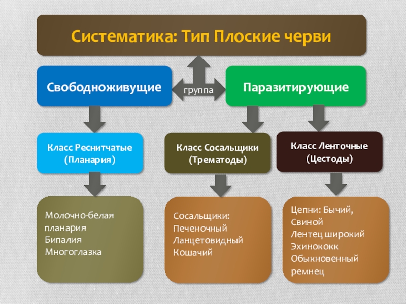 уметь выделять общие признаки типа Плоских червей
