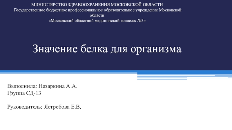 Руководитель: Ястребова Е.В.