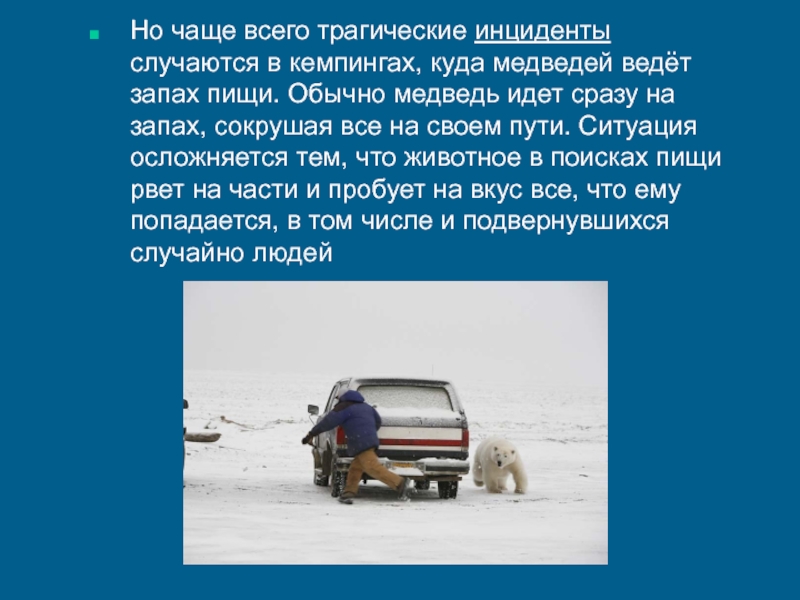 Слайд 18Но чаще всего трагические инциденты случаются в кемпингах, куда медведей ведёт
