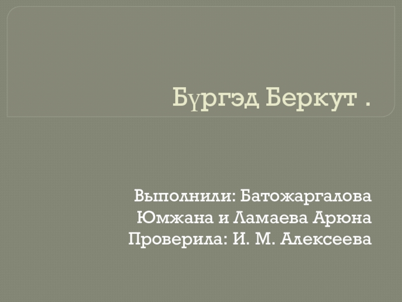 Бүргэд Беркут .Выполнили: Батожаргалова Юмжана и Ламаева АрюнаПроверила: И. М. Алексеева