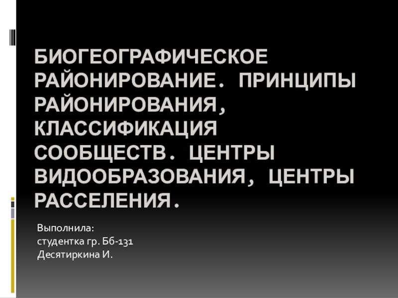 Биогеографическое районирование - раздел биогеографии, суммирующий её достижения в виде схем общего биогеографического деления.