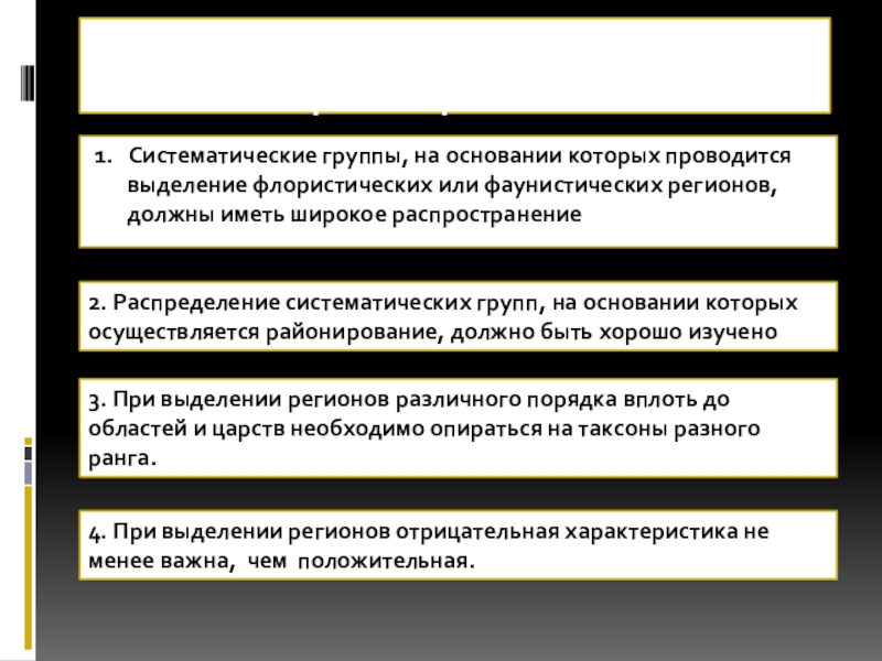 3. При выделении регионов различного порядка вплоть до областей и царств необходимо опираться на таксоны разного ранга.