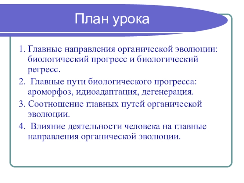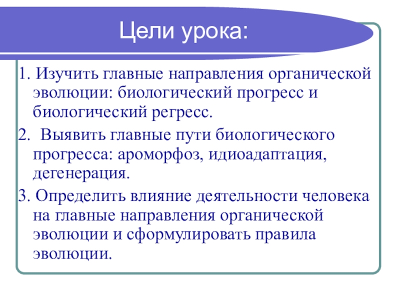1. Изучить главные направления органической эволюции: биологический прогресс и биологический