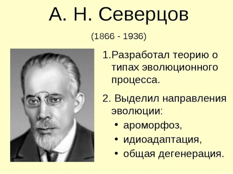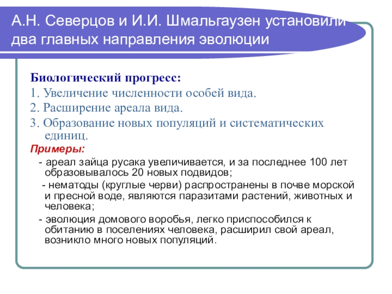 Слайд 17А.Н. Северцов и И.И. Шмальгаузен установили два главных направления эволюции