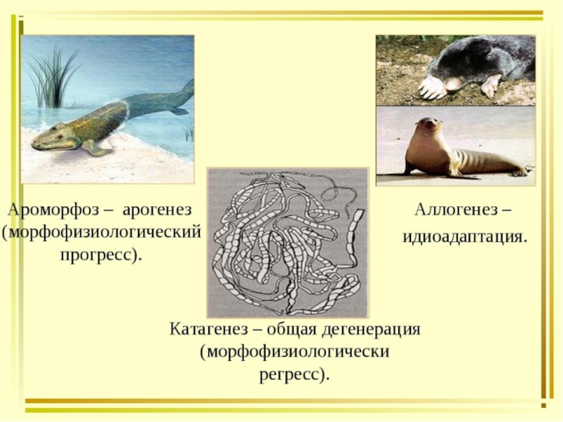 2. Выявить главные пути биологического прогресса: ароморфоз, идиоадаптация, дегенерация.
