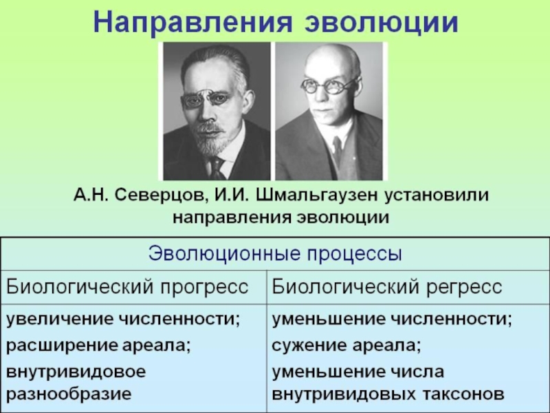 1. Главные направления органической эволюции: биологический прогресс и биологический регресс.