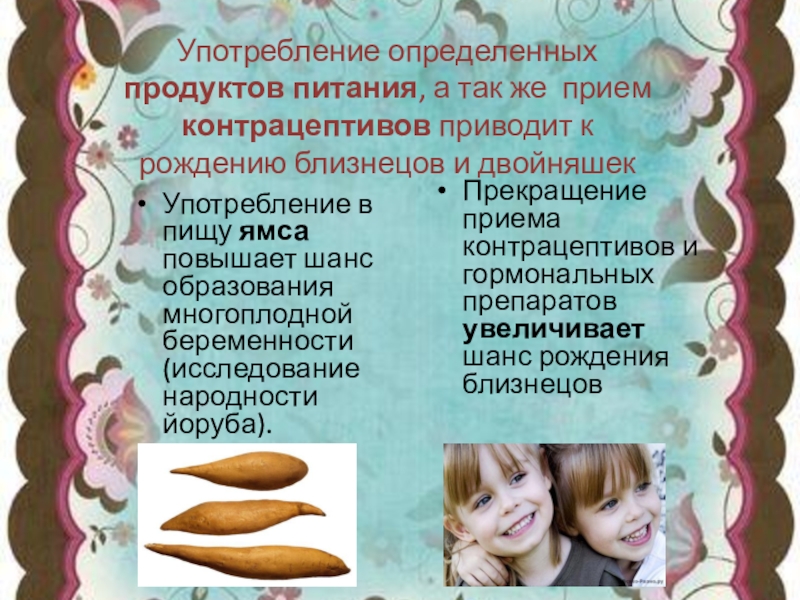 Употребление в пищу ямса повышает шанс образования многоплодной беременности (исследование народности йоруба).