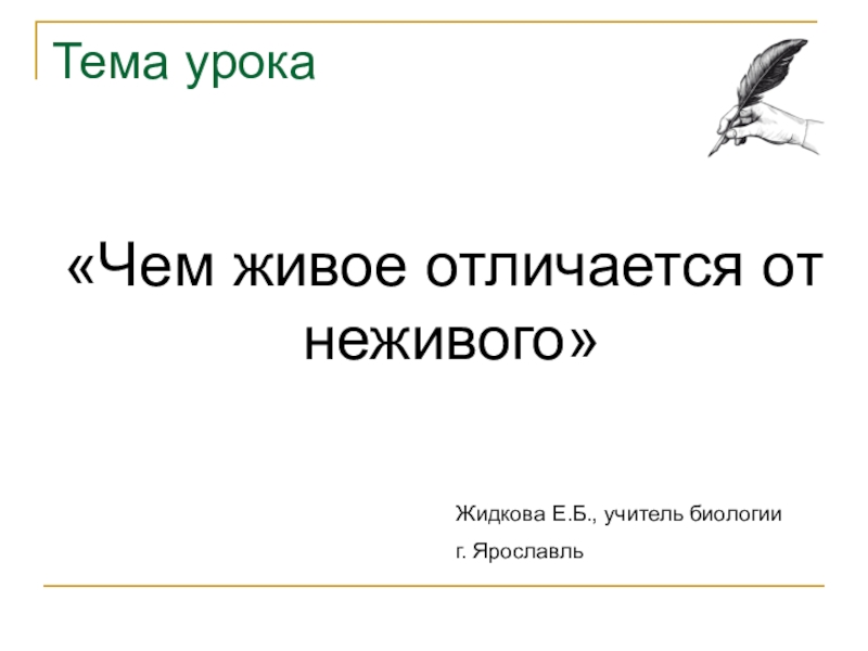 Тема урока«Чем живое отличается от неживого»Жидкова Е.Б., учитель биологии г. Ярославль