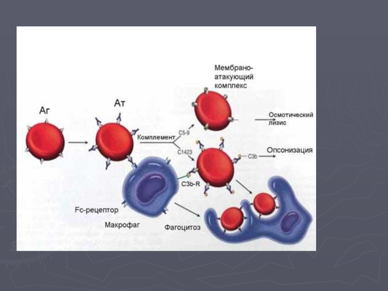 Гибель клеток вызывается связыванием Ат (IgG) с поверхностными клеточными