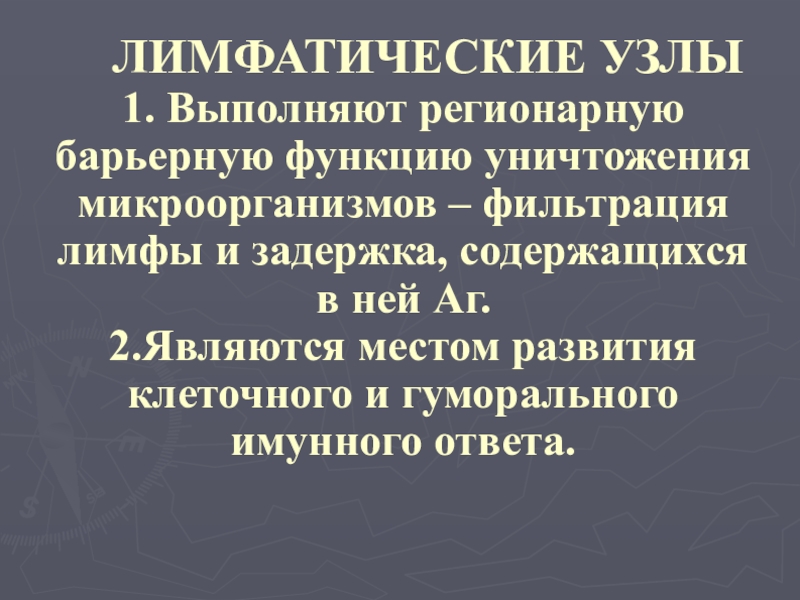 Слайд 8 ЛИМФАТИЧЕСКИЕ УЗЛЫ 1. Выполняют регионарную барьерную функцию уничтожения микроорганизмов –