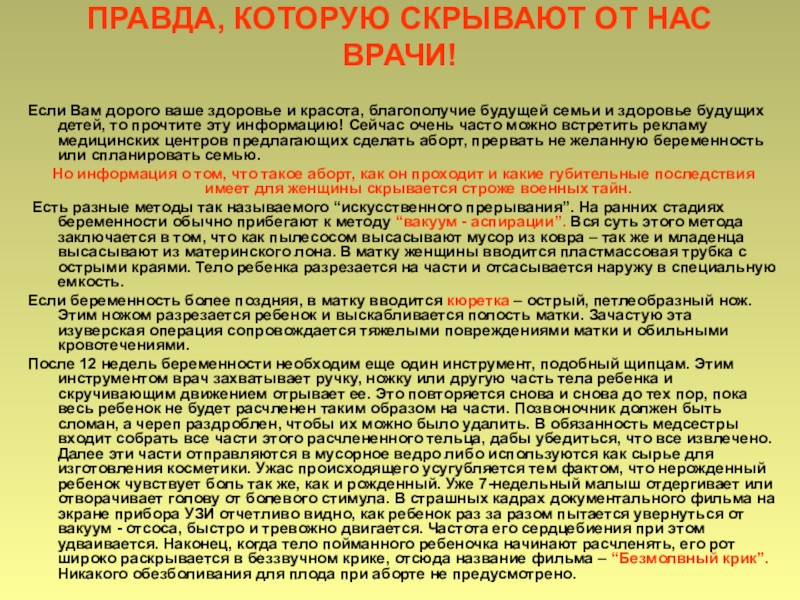 Слайд 20ПРАВДА, КОТОРУЮ СКРЫВАЮТ ОТ НАС ВРАЧИ!