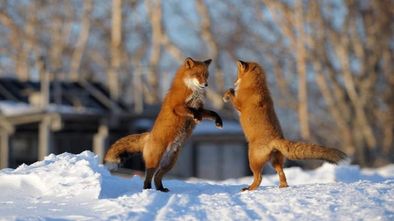 над осторожностью , поэтому нередко попадает она в трудное положение . Лиса имеет острое зрение , слух и обоняние . Охотится на грызунов или зайцев . Весной в норе лисиц появляются щенята . Иногда их бывает больше десятка